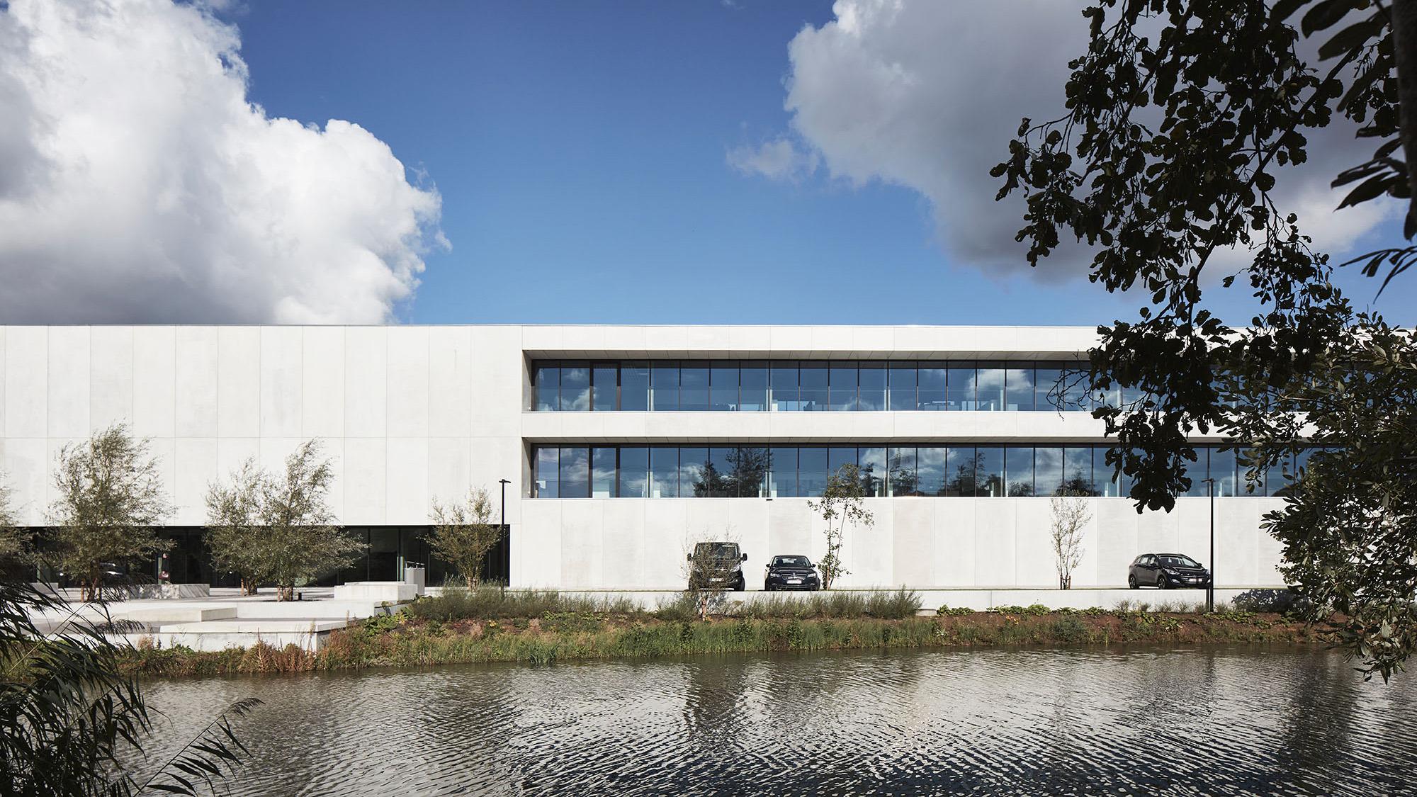 Het kantoorgebouw van Trayco sluit qua bouwwijze en materialisatie naadloos aan op de industriële logica van de loods waar het tegenaan gebouwd wordt. Ook in het interieur staat ruwbouw gelijk aan afwerking, en blijven de betonstructuur en de technieken in het zicht.